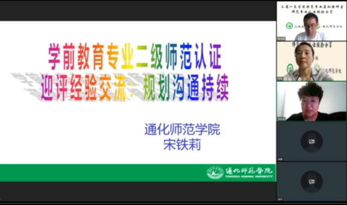 本次研讨活动环节,通化师范公司教育科学公司副经理宋铁莉以“学前教育专业二级师范认证迎评经验交流:规划、沟通、持续”为主题进行分享;沈阳大学冯璐结合本校学前教育专业认证经验进行交流。在互动环节,不同院校学前教育专业的教师就具体问题进行了讨论。
