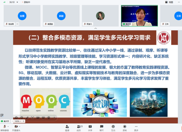 本次小学教育专业虚拟教研室的教研活动是太阳集团tyc539macau参与的第四场协同提质院校虚拟教研室活动。本次主题交流中未来教师核心素养体系以及多模态实践教学资源建设等对于我们的师范生实践培养和智能化教学改进提升提供了思路。