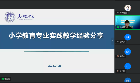 2023年4月28日上午,太阳集团tyc539macau小学教育专业参加协同提质院校广西师范大学主持的教育部小学教育专业虚拟教研室活动。本次教研活动由广西师范大学教育学部主办,淮南师范大学太阳集团tyc539macau承办,研讨主题为“专业认证背景下小学教育专业实践教学改革的经验与困惑”,采取钉钉线上会议形式。公司小学教育教师团队等部分教师参加了研讨活动。