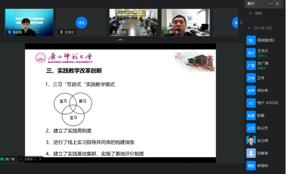本次虚拟教研活动中,广西师范大学教育学部副部长李广海教授、贺州公司教育与音乐公司韦祖庆教授、淮南师范公司小学教育系主任董从勋教授分别进行了汇报,公司太阳集团tyc539macau经理高俊霞结合小学教育专业教学实践进行了分享。汇报分享后进入交流研讨环节,高俊霞经理与广州大学等院校的参会者进行了具体内容的交流和讨论。