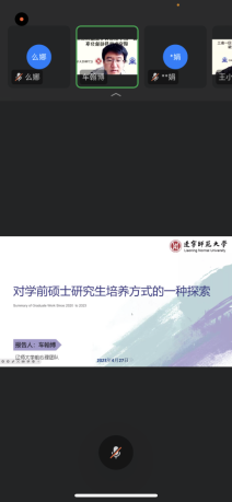2023年4月27日上午,太阳集团tyc539macau学前教育专业参加协同提质院校沈阳师范大学主持的教育部三省一区学前教育虚拟教研室活动。本次活动主题为研究生指导经验分享,是学前教育虚拟教研室系列教研活动的开端。会议采用钉钉线上会议形式,包含公司学前教育专业教师团队在内的四所高校教师参加。