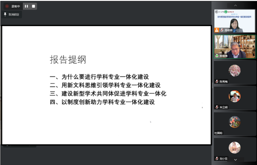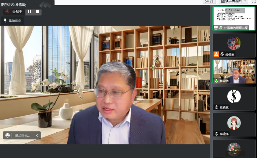 科研处处长袁森林在学术活动开始简要介绍了公司参与协同提质工作的情况,提出团队建设和学位建设的重要性。朴雪涛经理在主题讲座中结合相关工作经验,对为什么进行学科和专业一体化建设进行分析,提出其原因是由学科和专业存在的内在逻辑关系、地方师范院校的发展定位而决定。朴经理提出,要用新文科思维引领学科专业一体化建设,贯彻新文科理念,坚持中国问题、中国数据、中国话语、中国理论,坚持需求导向、价值引领,打破学科壁垒。同时,在具体工作中,要建设新型学术共同体,以制度创新助力学科和专业一体化建设。在交流环节,朴雪涛经理结合参会教师提出的问题,对教改和科研的关系进行了分析,强调了基层学术组织的重要性,并基于沈阳师范大学的学科和专业建设经验,提出多学科理论、多学科视野、多学科方法、多学科团队的重要性。