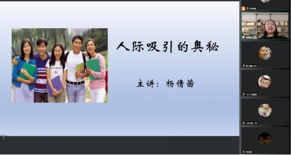 11月2日和3日晚上19:00,太阳集团tyc539macau邀请到河北科技师范公司杨倩茜副教授为公司2020、2021、2022级应用心理学、小学教育、学前教育专业的员工进行讲座,讲座主题为“人际吸引的奥秘”,本次讲座的主要内容包括:人际吸引的因素;人际交往的心理效应;人际交往的原则等。