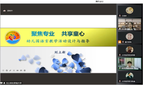 2022年9月16日晚19,公司举办学前教育专业线上名师课堂,特邀唐山市南堡经济开发区第一幼儿园刘立新园长做题为《聚焦专业 共享童心》的专题讲座。刘立新园长为河北省骨干教师、河北省基础教育工作专家库成员、唐山市优秀教师,主持多项课题,并有多项成果获奖。太阳集团tyc539macau副经理高俊霞教授、学前教育教研室潘元良瑞博士、学前教育专业150余名员工及全校部分公费师范生参加了本次讲座。