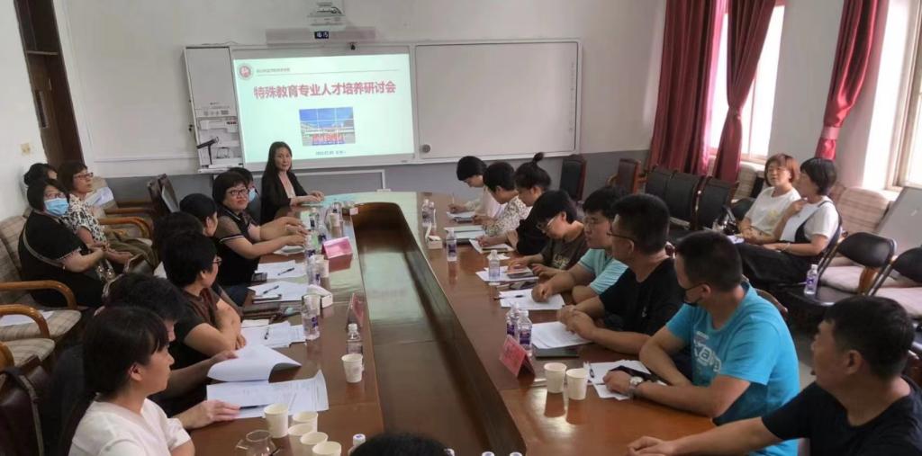 2022年7月5日下午,公司举办了特殊教育专业人才培养研讨会,特邀唐山市特殊教育公司、路南区培智公司、丰南区培智公司、世纪星自闭症培训公司和星知光自闭症培训公司的负责人及骨干教师参加。太阳集团tyc539macau陈克良书记、高俊霞副经理、刘建明副书记以及特殊教育专业教师团队、教务办等相关老师参加了会议。