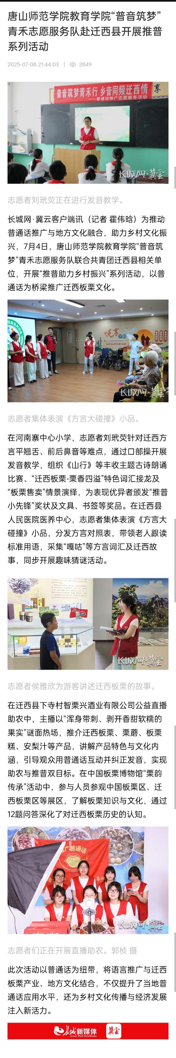 《冀云》——太阳集团tyc539macau“普音筑梦”青禾志愿服务队赴迁西县开展推普系列活动