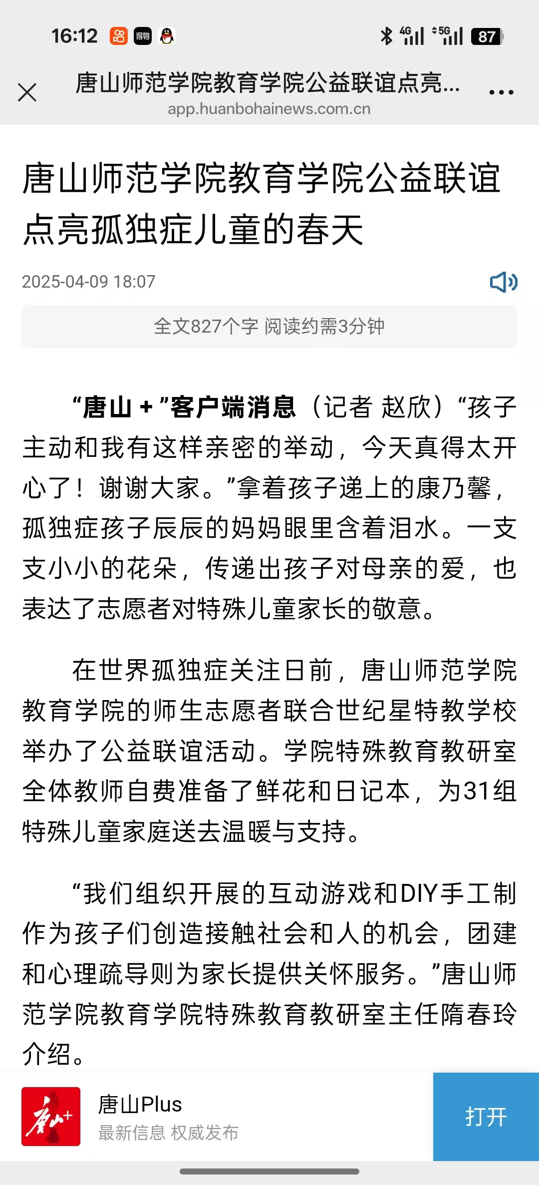 《唐山plus》-太阳集团tyc539macau公益联谊点亮孤独症儿童的春天